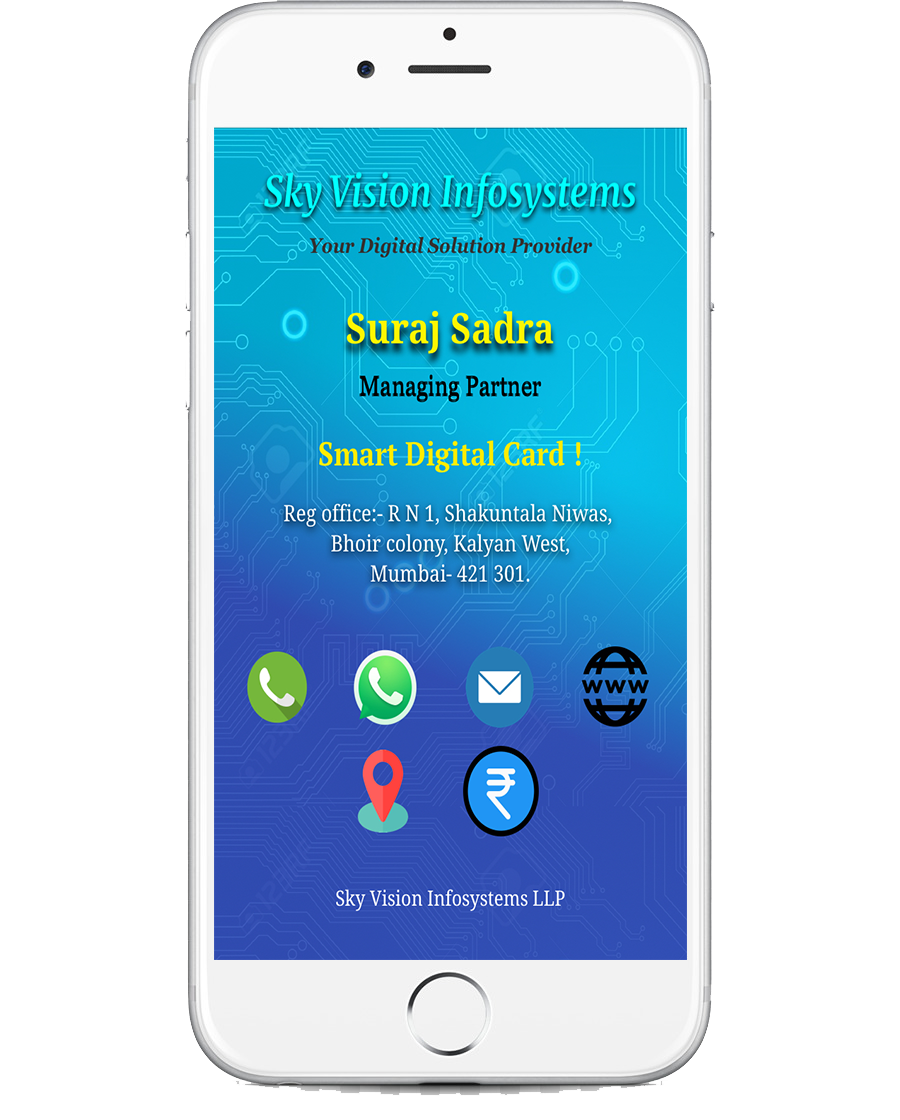Get your Digital Business Card in just a minutes. Getting a Digital Card is simple just click an image of your existing printed business card and send it to us. Receive a call from us & get your link.
